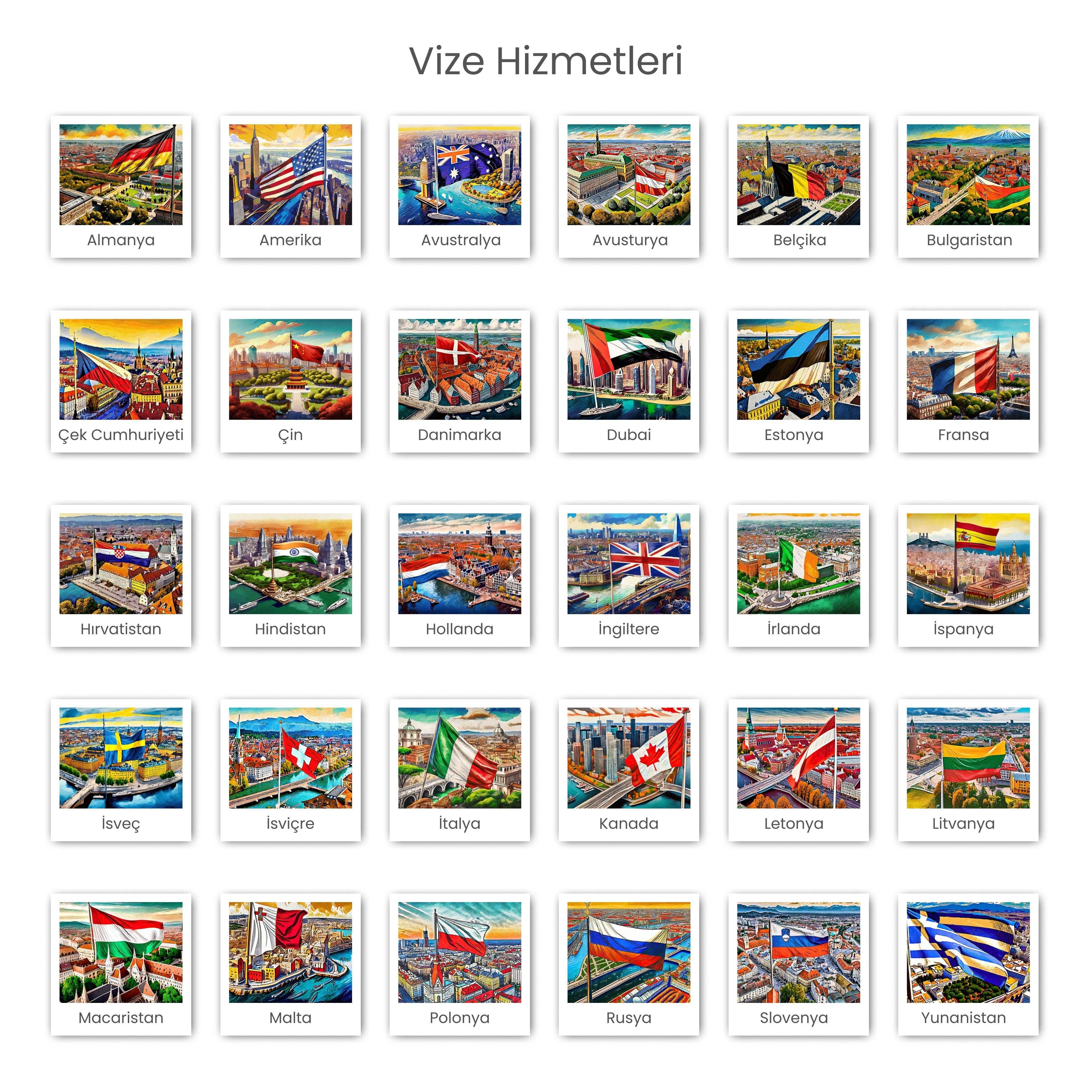 Schengen Vize Başvuruları: Avrupa’nın 26 ülkesine yapılacak turistik, ticari veya aile ziyareti amaçlı seyahatlerinizde tüm Schengen vize türleri için profesyonel destek sunuyoruz. Randevu, evrak hazırlığı ve başvuru sürecinin her aşamasında doğru yönlendirme ile yanınızdayız.